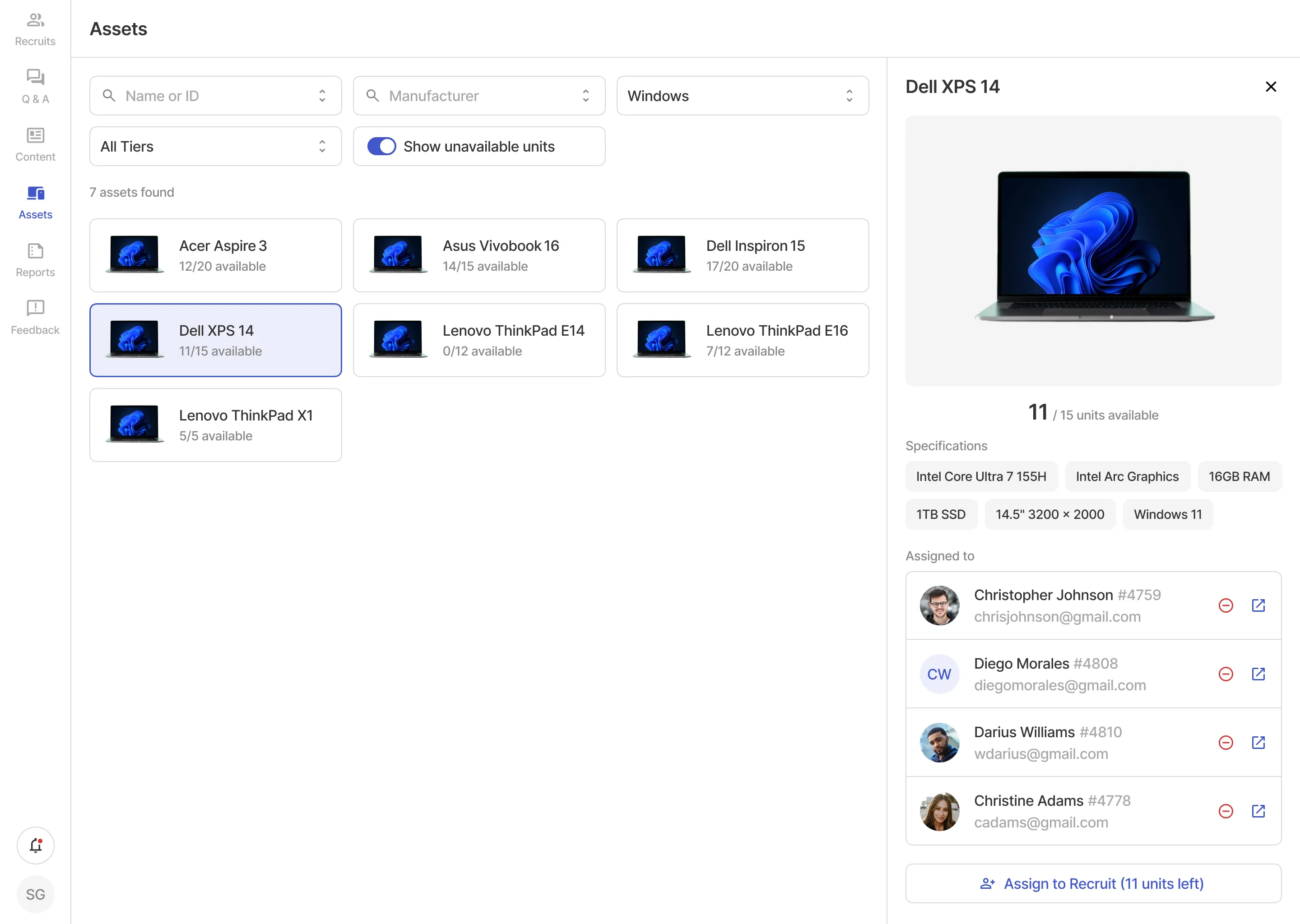 A recruit management platform to oversee all recruits' onboarding.
