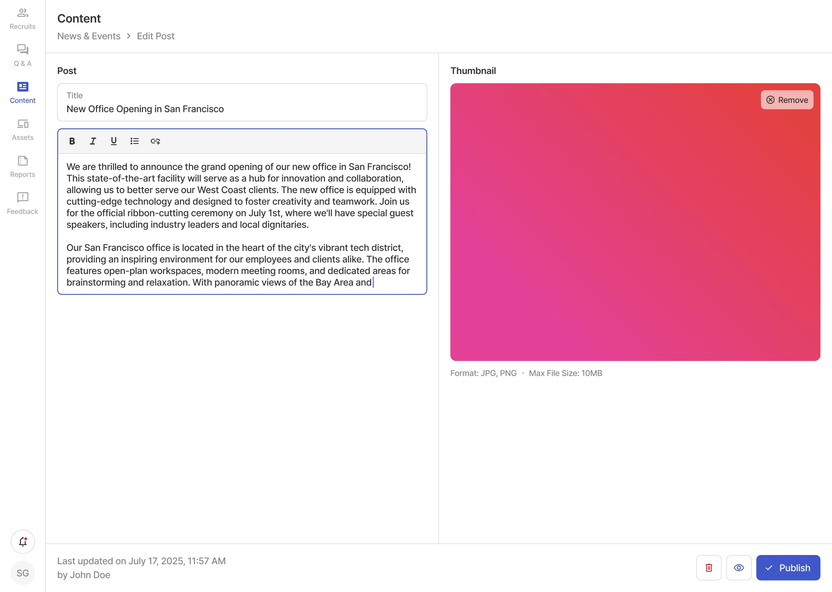 The recruitment staff can manage recruits' profiles, respond to queries, allocate assets, customize onboarding content and more.